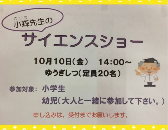 10月10日(金)14時から「サイエンスショー」を開催します。
